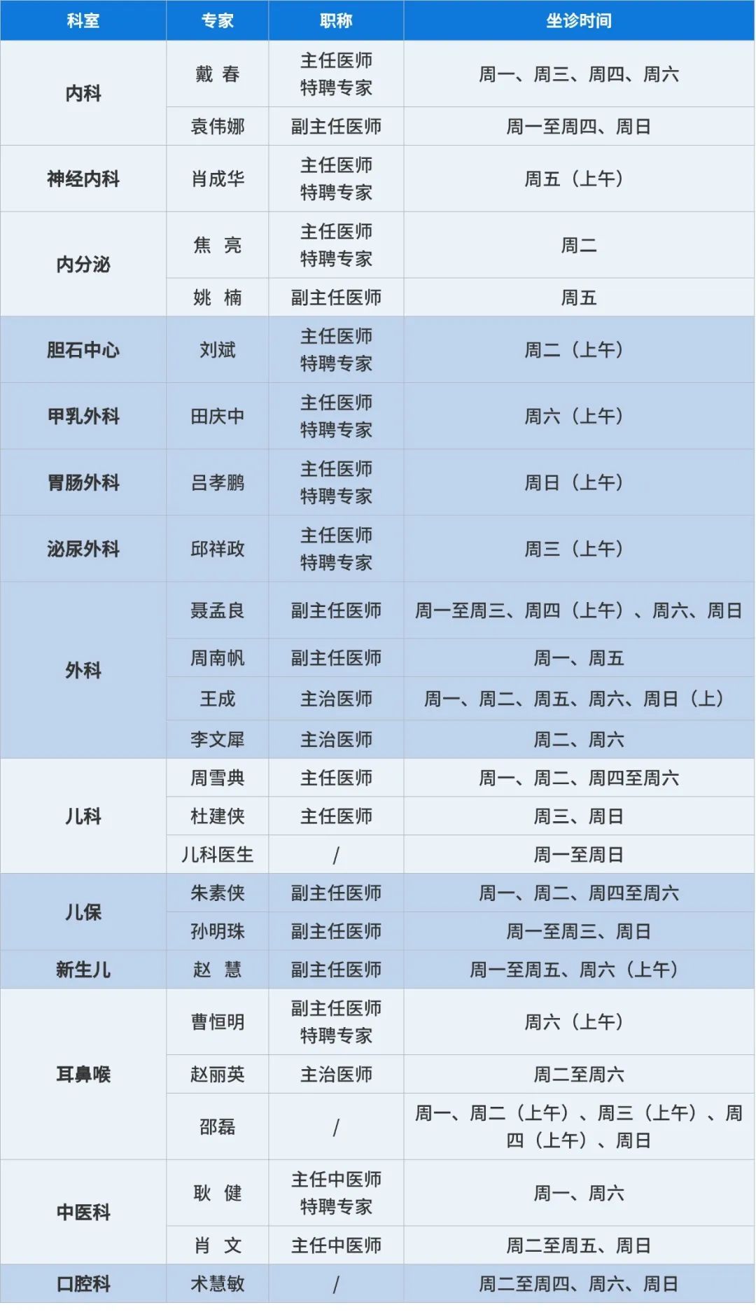 和平医院2025年2月17日-2月23日医生坐诊时间表